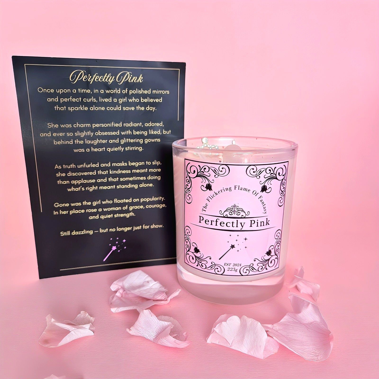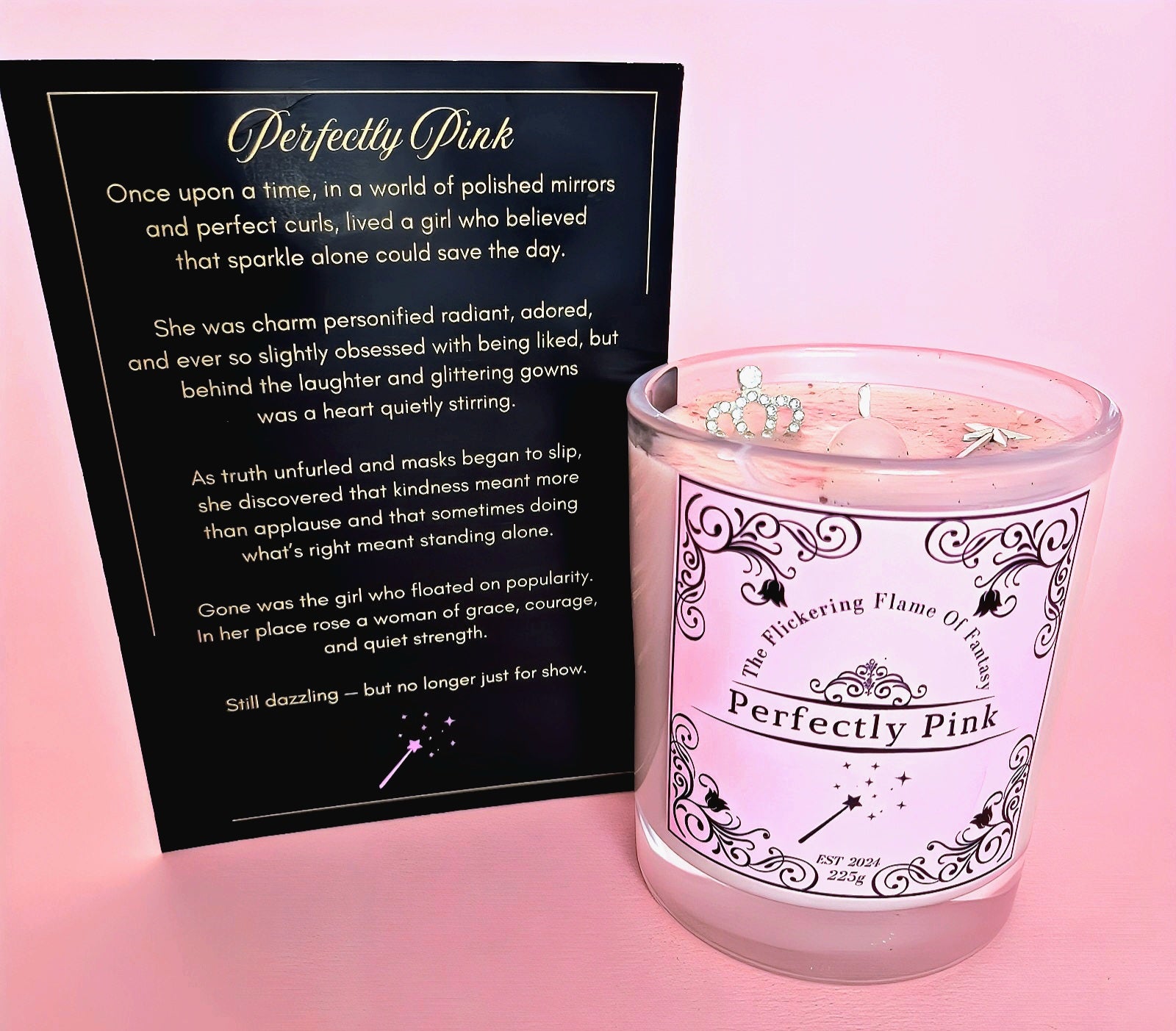 This fragrance mirrors her journey: bright, juicy cherry and strawberry burst forth like a spotlight’s glow, softening into a whimsical bouquet of raspberry, muguet, and creamy sandalwood. As the flame settles, warm vanilla, amber, and soft musk emerge, the quiet grace of a soul who’s finally learned what true goodness means.