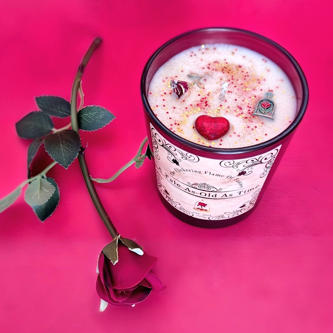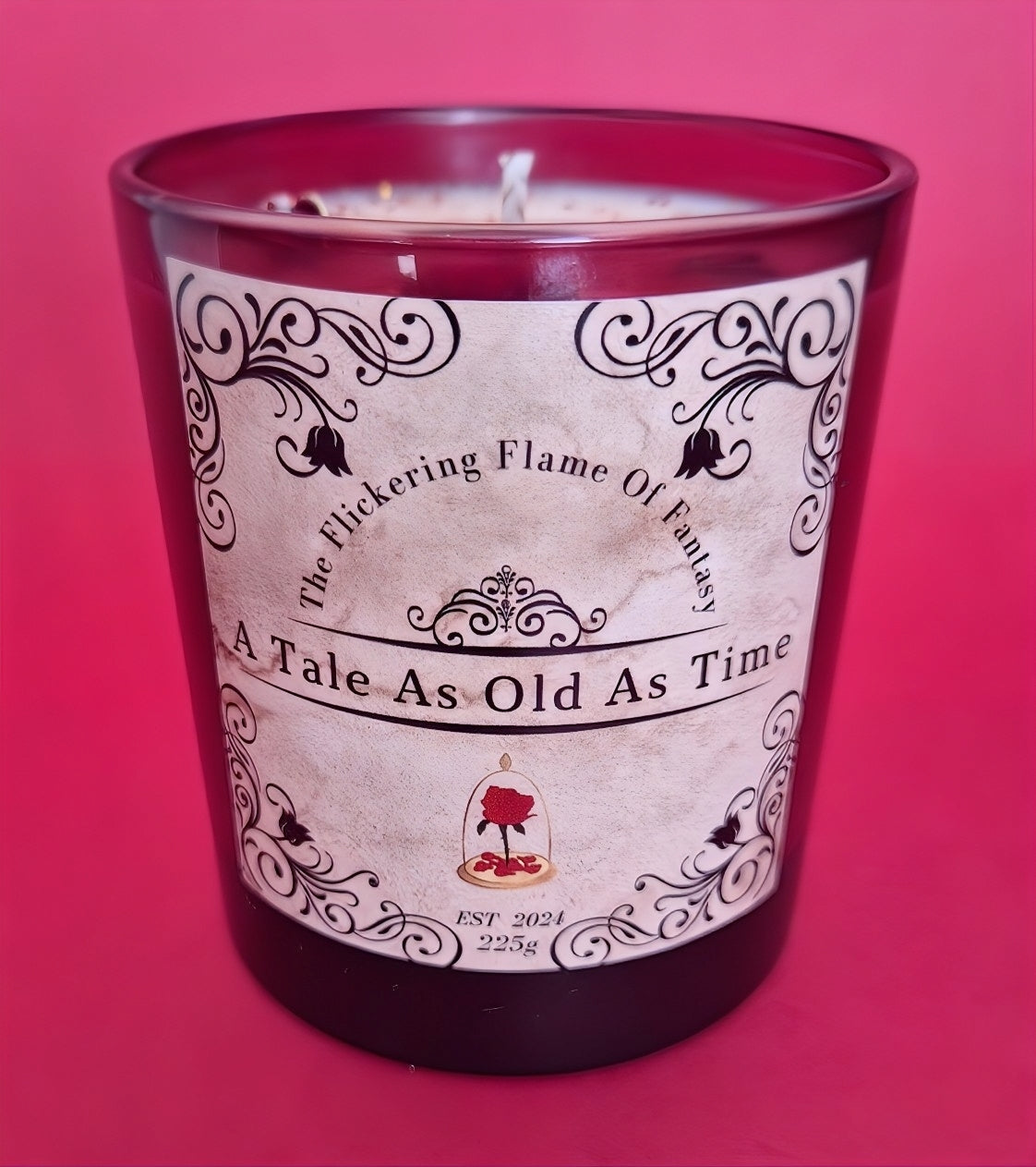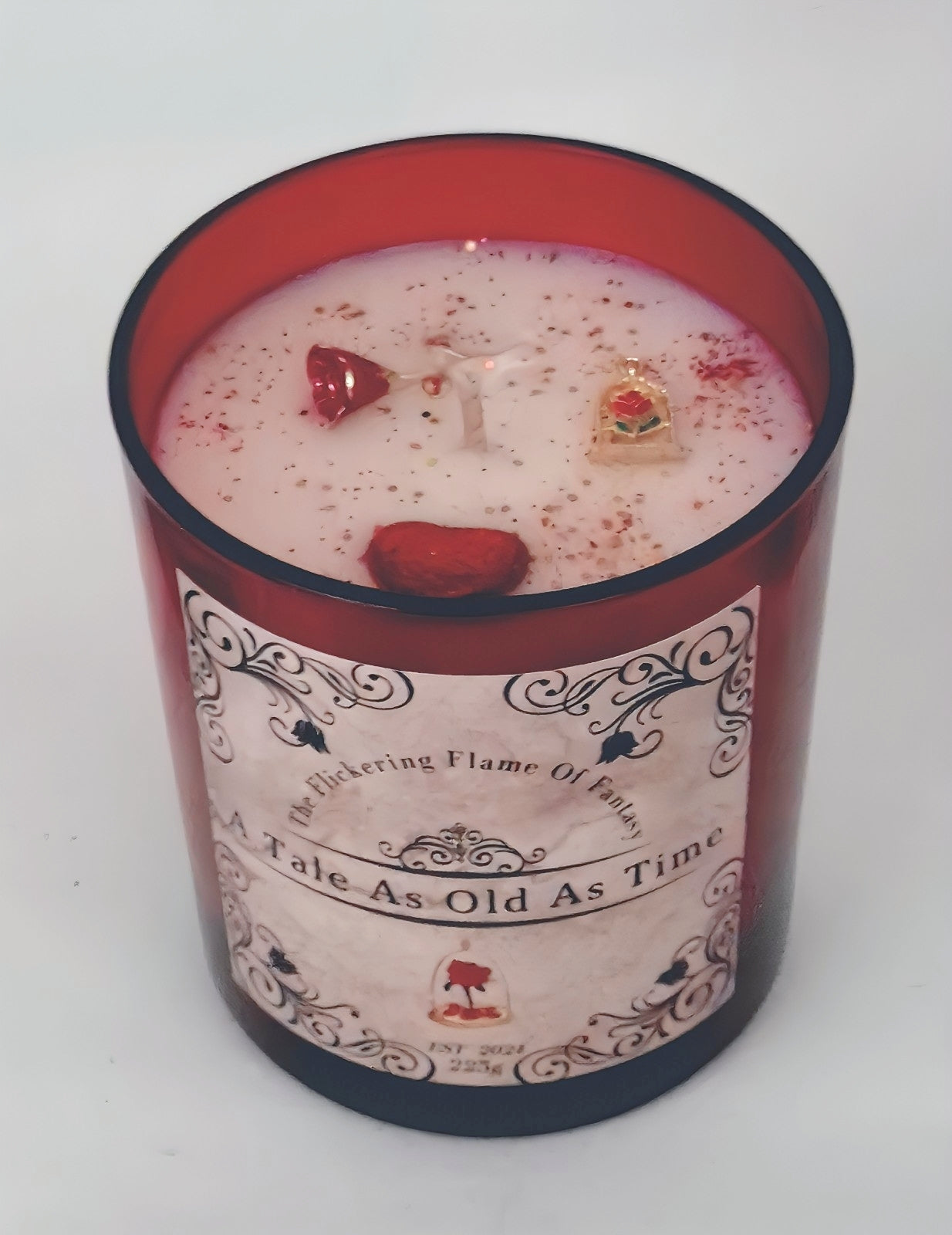 Step into the heart of the enchanted castle with Tale as Old as Time a candle that captures the gentle strength, curiosity, and quiet magic of Belle herself. This elegant blend is infused with sweet vanilla and wrapped in notes of golden mimosa, wild rose, warm honey, and soft peach. It’s a fragrance that feels like a timeless story whispered between pages, a dance of intellect and heart that is both comforting and radiant, just like Belle herself .